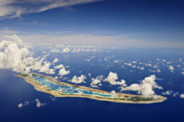 Aerial view of an underwater paradise in the remote Pacific Ocean – The Southern Line Islands – that includes the sea around Millennium Island, now being protected by the government of Kiribati.